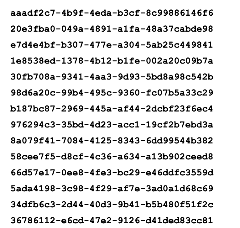 💡 보안 난수 생성기를 이용해 모두 다른 ID가 생성된다. 중간에 숫자 4가 고정적으로 박혀있는 것을 볼 수 있는데 이는 버전을 나타내기 위한 표시임.