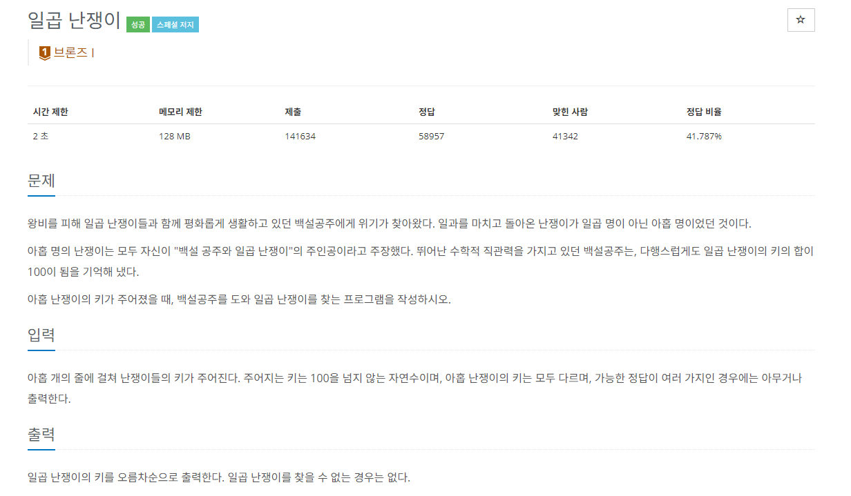 2309번: 일곱 난쟁이