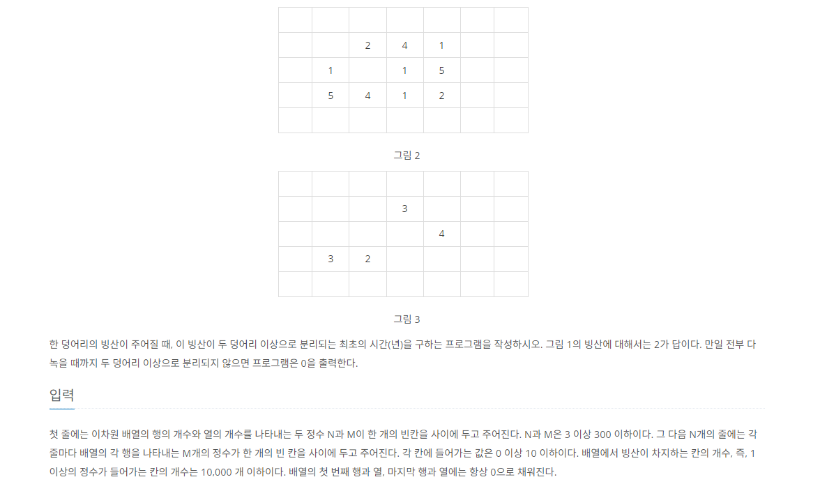 | [백준 2573번 / Java] BOJ 2573 : 빙산 (0) | 2024.03.27 |