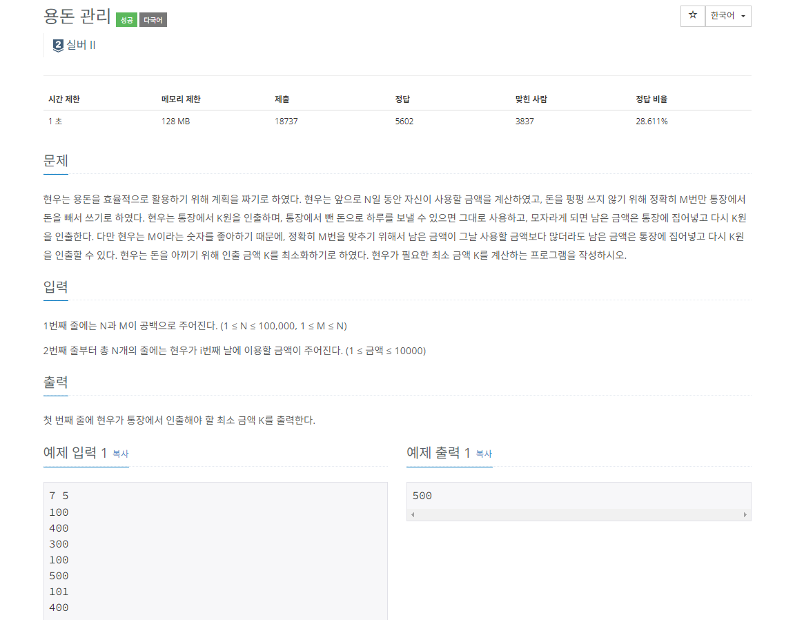 6236번: 용돈 관리