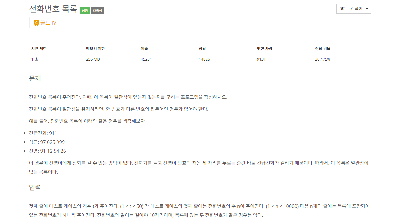 | [백준 5052번 / Java] BOJ 5052 : 전화번호 목록 (0) | 2024.03.27 |