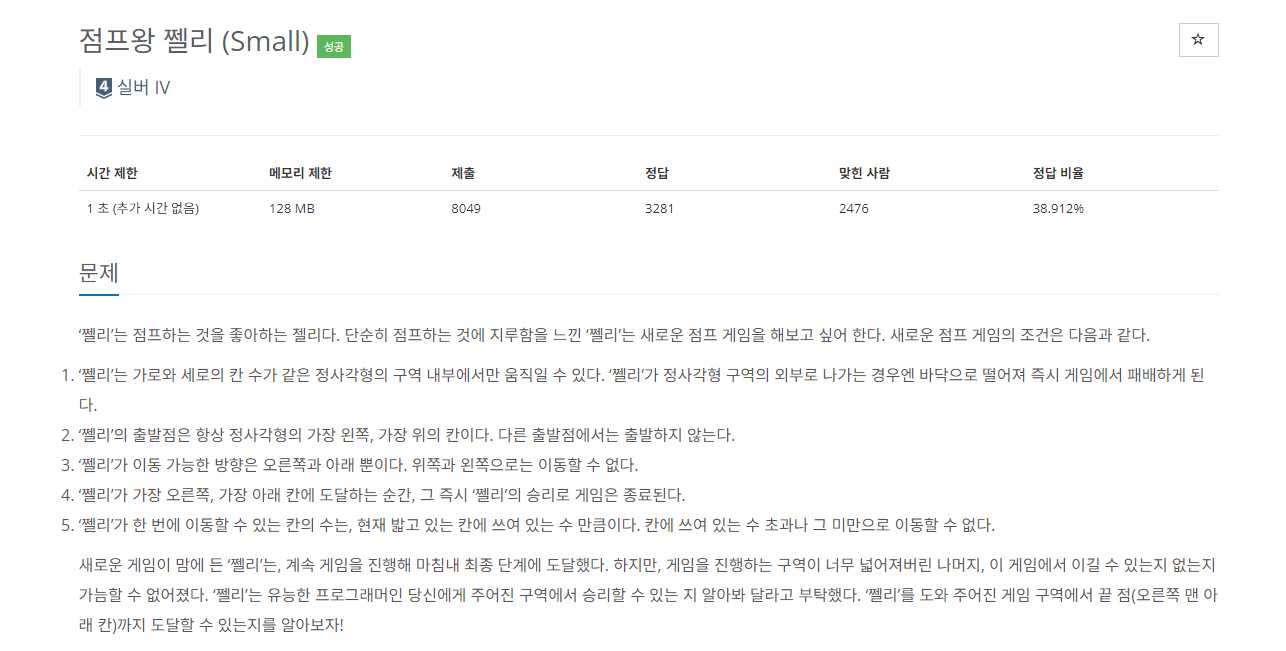 16173번: 점프왕 쩰리 (Small)