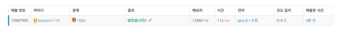 오늘은 알고리즘 개념 학습 하느라 백준 문제는 스트릭 채우기 용으로 쉬운 문제 풀었다... ㅎㅎ ;;