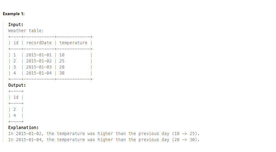 INNER JOIN weather AS yesterday ON DATE_ADD(yesterday.recordDate, INTERVAL 1 DAY) = today.recordDate