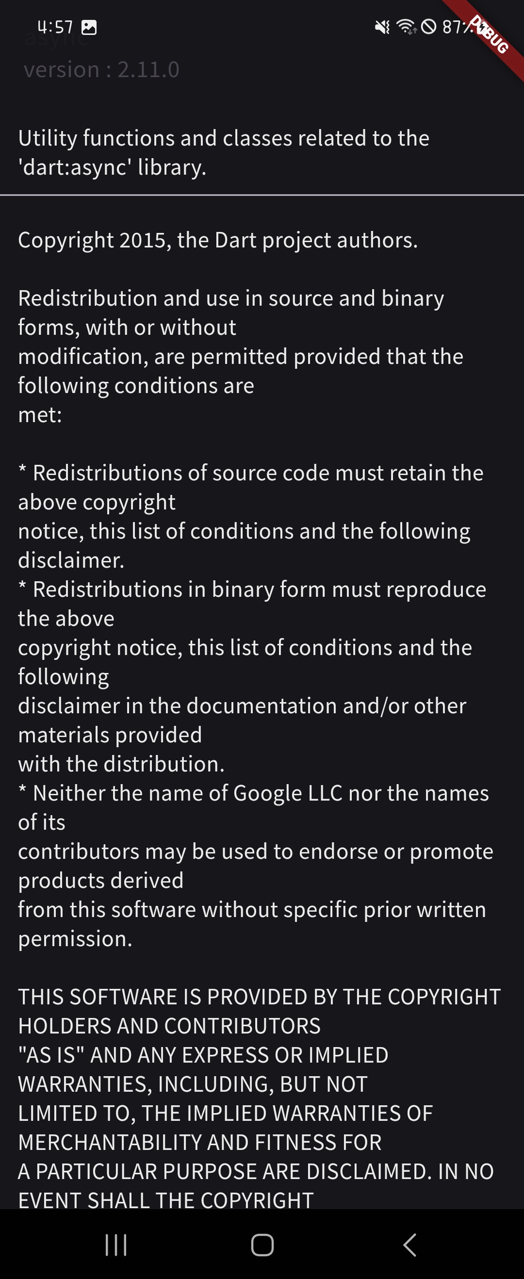 ⚠️ 자동으로 생성된 oss_licenses.dart에는 모든 패키지가 다 저장되기 때문에, 명시할 패키지만 남겨두고 삭제하면 된다