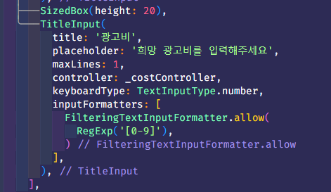 | [Flutter] TextField, CupertinoTextField에 숫자만 입력되게 하기 (0) | 2024.02.21 |